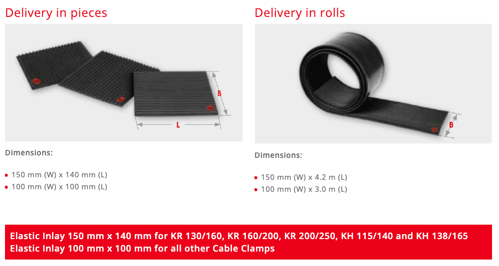 Available in two sizes (150mm x 140mm for larger clamps, 100mm x 100mm for standard clamps), elastic inlays can be supplied in individual pieces or rolls. They’re also available factory-fitted to K, KT, KS, and KP series clamps. The material is recyclable and complies with RoHS and REACH regulations, providing decades of continuous functionality while compensating for vibrations without reducing retention forces.