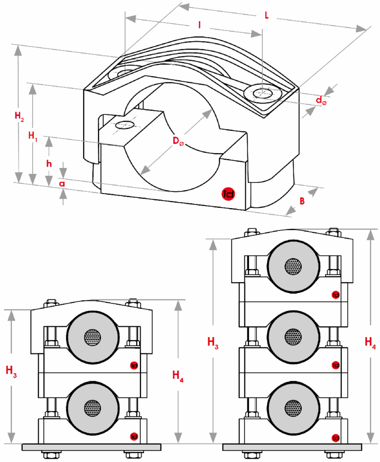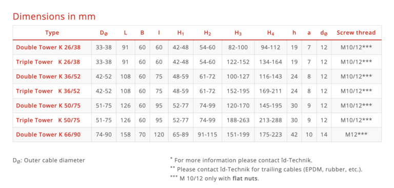 The K-Tower Series are heavy-duty, fibreglass-reinforced polyamide clamps (non-metallic, UV-resistant, self-extinguishing, low-smoke, zero-halogen) designed for stacking and fastening single- or multi-core cables indoors or outdoors, across harsh environments including extremes of UV, ozone, oils, solvents, salt, and other corrosive influences.