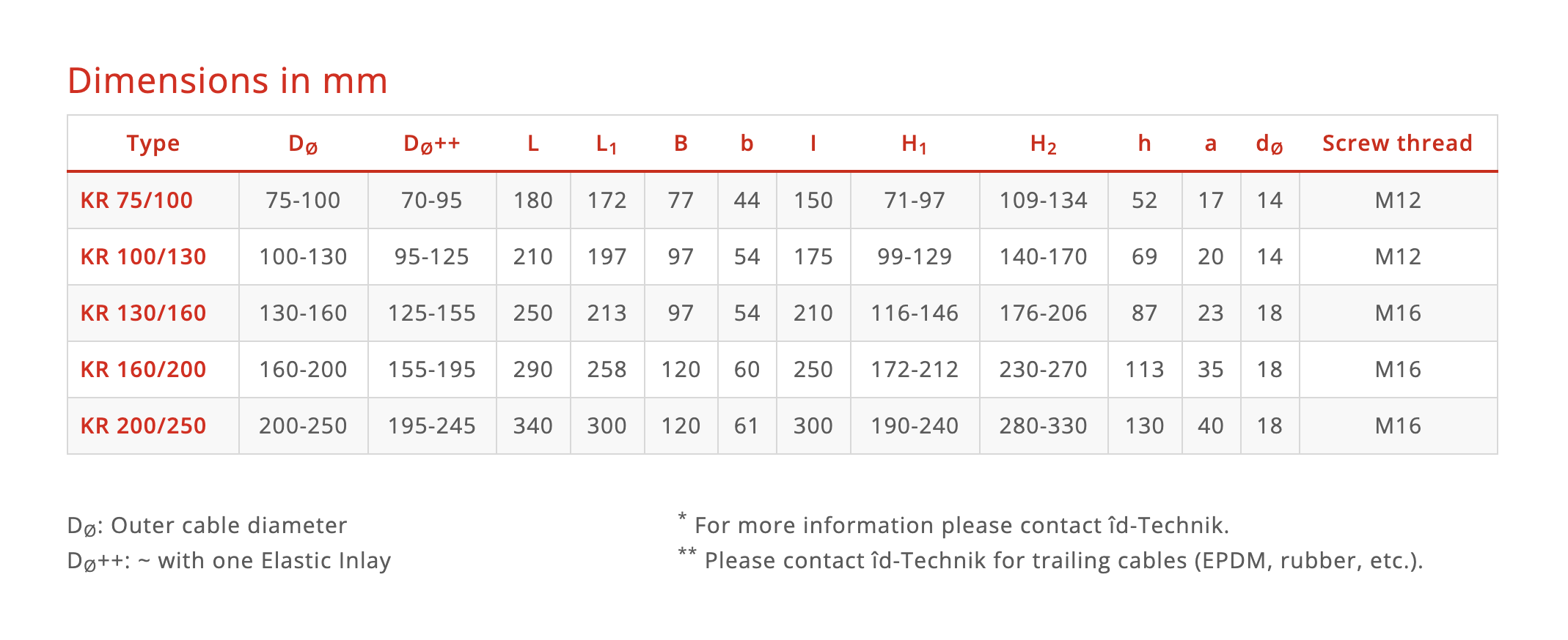 Installation is fairly straightforward — recommended tightening torque is 8 Nm (top part) and 20 Nm (bottom part). For cables subject to diameter changes, vibration or vertical installation, optional elastic inlays can be used: they cushion and secure cables, absorb vibration and compensate for diameter variations, also extending the clamping range.