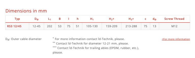 The RS Series are modular, fibreglass-reinforced polyamide block-clamps built for variable fastening of single- and multi-core cables — usable indoors or outdoors. They support cable outer diameters from 12 mm up to 45 mm.