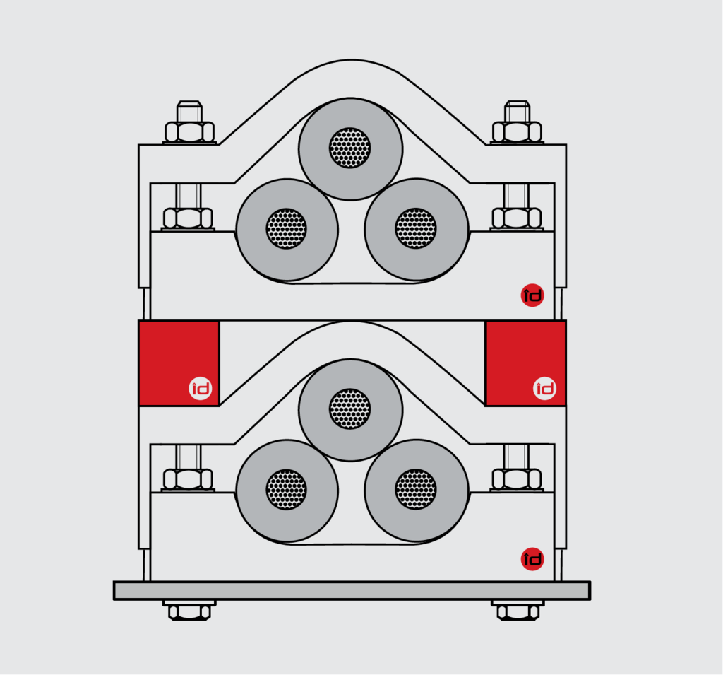 Universal Adapter-Set (AS) enables secure stacking of KS Series cable clamps into double-tower configurations, providing a space-efficient vertical mounting solution. Each set consists of two identical high-grade polyamide components (78mm L x 31mm W x 34mm H with M10 screw thread), manufactured from fibreglass-reinforced material with specialized UV protection. The adapter set operates reliably from -60°C to +120°C continuous operation, withstanding short-term heating up to 220°C.